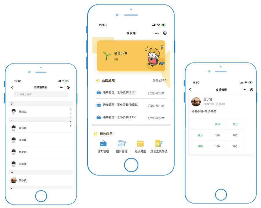 實現數字化辦公,對外向學生家長提供各種服務,如:消息通知、請假管理,校園活動,學生動態,教師通訊錄,學生定位等各種服務。對內向教師提供各類服務,如:班級管理,考勤管理,請假管理,活動管理,課堂點名,家長會管理,教師課程等等各種服務